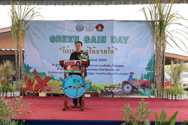 วันที่ 24 กุมภาพันธ์ 2569 เวลา 13.30 น. นายเจษฎา ขวัญแก้ว สหกรณ์จังหวัดนครปฐม ร่วมพิธีเปิดเวทีรณรงค์ Green Gain Day สร้างการเรียนรู้ และสร้างแรงจูงใจไม่เผาแต่ได้รายได้ เพื่อส่งเสริมการเกษตรที่เป็นมิตรกับสิ่งแวดล้อมลดการเผาในพื้นที่เกษตร โดยมีนายสมาวิษฎ์ สุพรรณไพ รองผู้ว่าราชการจังหวัดนครปฐม เป็นประธานในพิธี ณ ศูนย์เรียนรู้การเพิ่มประสิทธิภาพการผลิตสินค้าเกษตร เครือข่าย ตำบลกระตีบ อำเภอกำแพงแสน จังหวัดนครปฐม